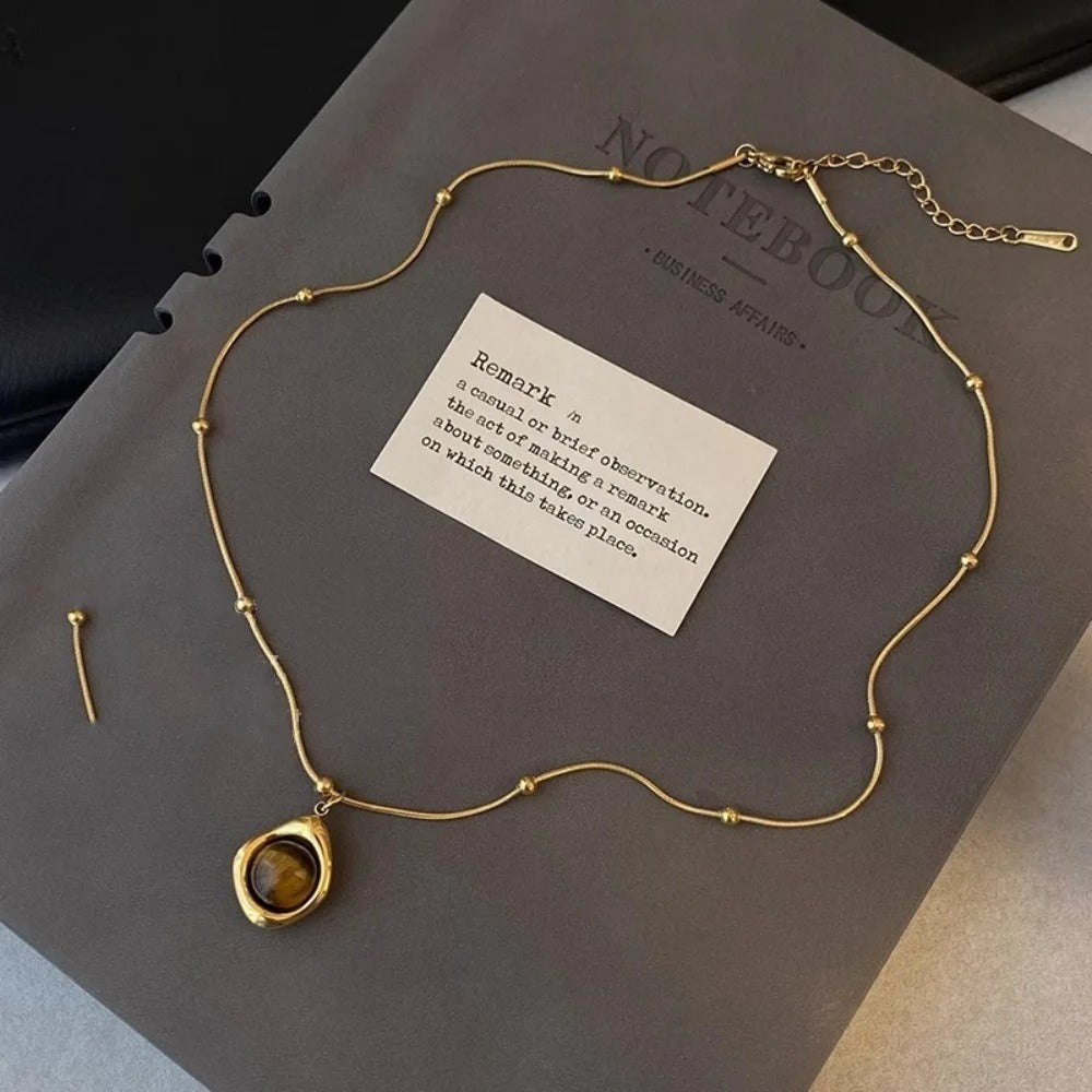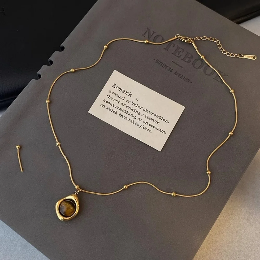 Name:Alloy double-layer collarbone chain set jewelry retro temperament layered tiger eye stone pendant necklace for women