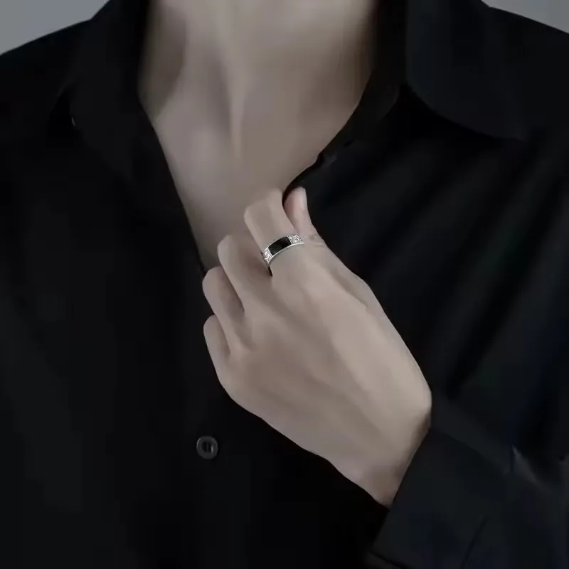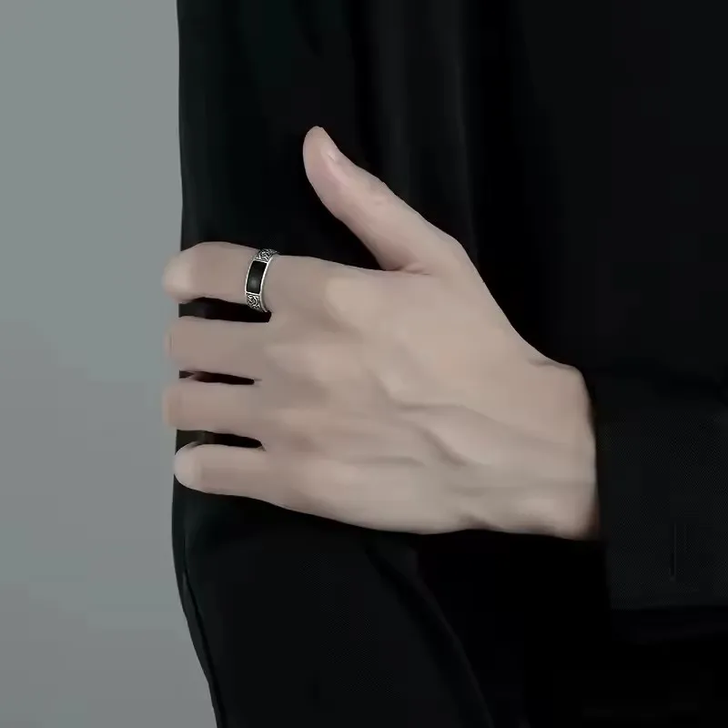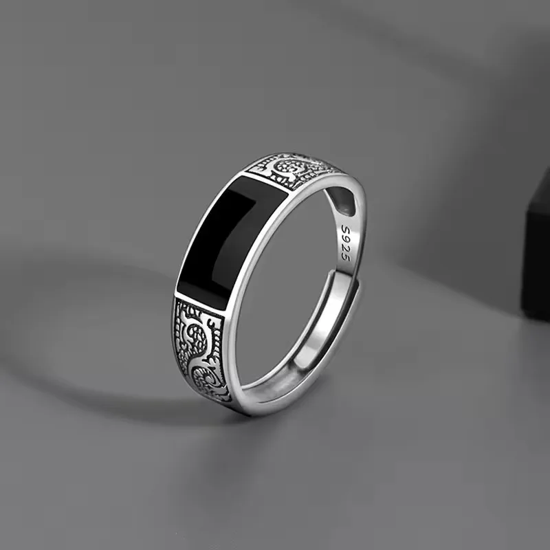 SamPanda 925 Sterling Silver Ring for men Minimalist Handmade Retro Black Stone Ring Party Jewelry Gift Prevent Allergy
